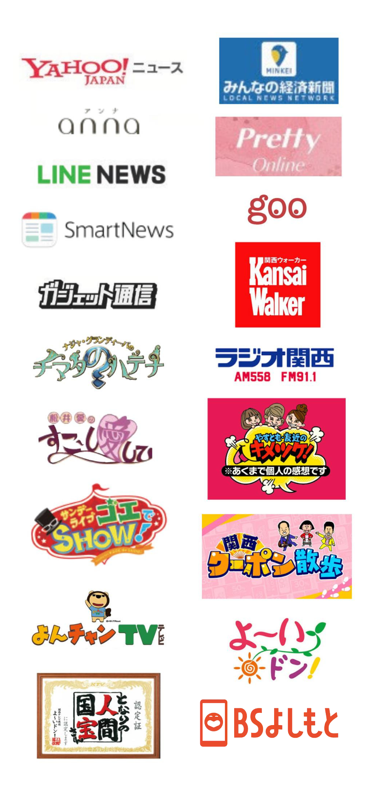 yahoo!ニュース / SmartNews / LINE NEWS /gooニュース / ガジェット通信 / 関西をもっと楽しむanna / Pretty Online / ラジトピ(ラジオ関西トピックス) / cake-news / なんば経済新聞 / ストレートプレス / mapionニュース / one-news /excite!ニュース